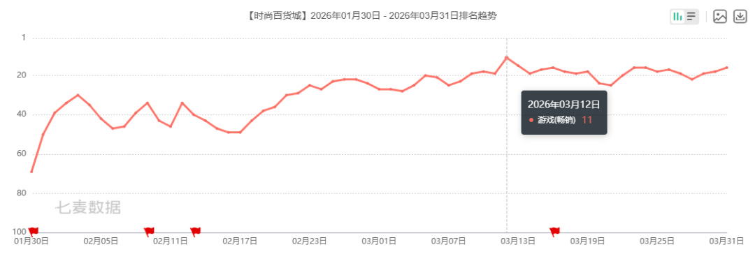 《时尚百货城》上线后,不仅迅速登顶中国iOS手游下载榜,营收表现也在持续攀升,3月12日成功冲上iOS畅销榜TOP11。本期游戏收入环比激增80%,跻身收入榜TOP20,成为女性向模拟经营赛道的亮眼黑马。