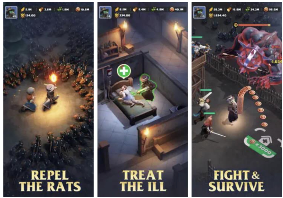 《Last Asylum: Plague》以14世纪欧洲黑死病为背景,玩家扮演戴着鸟嘴面具的瘟疫医生,从一座摇摇欲坠的教堂医院起步,逐步建立庇护所、扩张领土。该游戏营造出一个神秘且亟待拯救的中世纪疫区,与冰雪、丧尸题材题材形成鲜明对比,为玩家带来了新鲜的体验。