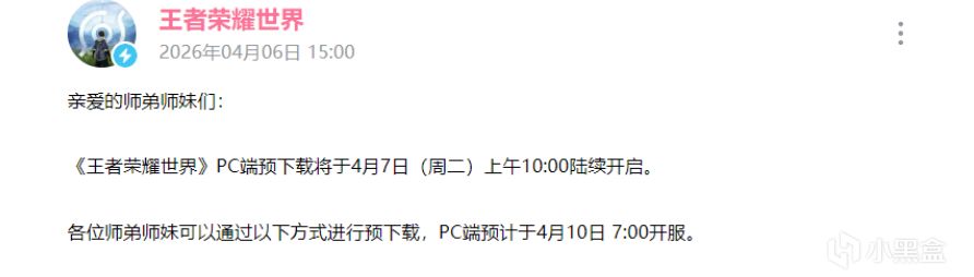 小黑盒PC這邊也是開放了《王者榮耀世界》預下載!遊戲上線後通過小黑盒PC端啓動遊戲超過1分鐘可以獲得「黃金寶箱」