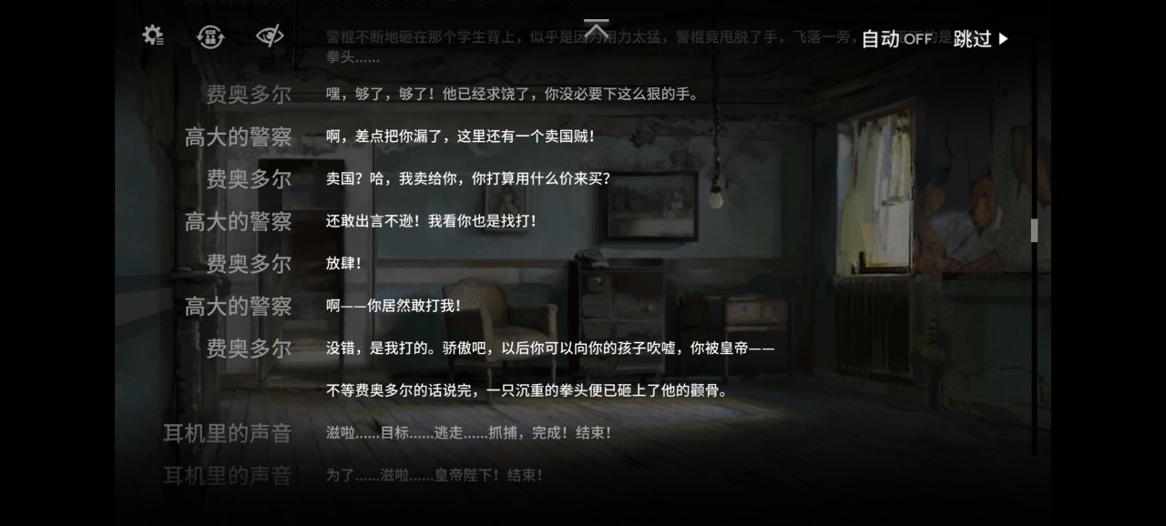 當天也是風雲湧動,烏薩斯的老闆不是很樂意參加這個舞會,被小弟催着去應酬,還沒想好到底去不去,小弟發現舞會並不是最大的問題,還有人密謀做自爆兵給舞會炸了,於是連夜喊內衛去救老闆。老闆對小弟無處不在的保護很惱火,就把火撒在內衛身上,自個走了,與此同時舞會區的警衛開始鎮壓學生,大批學生被捕,剩餘的逃跑的躲進了舊劇院。