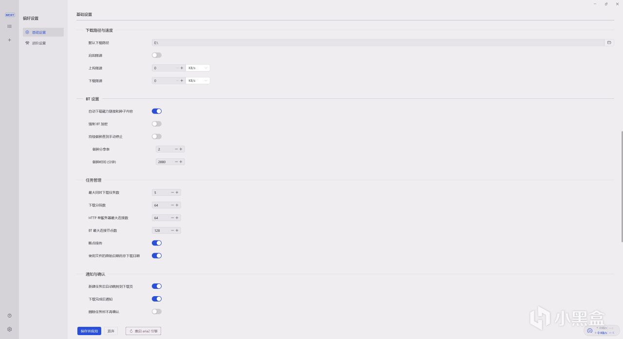 • BT 專屬優化:選擇性文件下載、DHT、PEX、加密傳輸