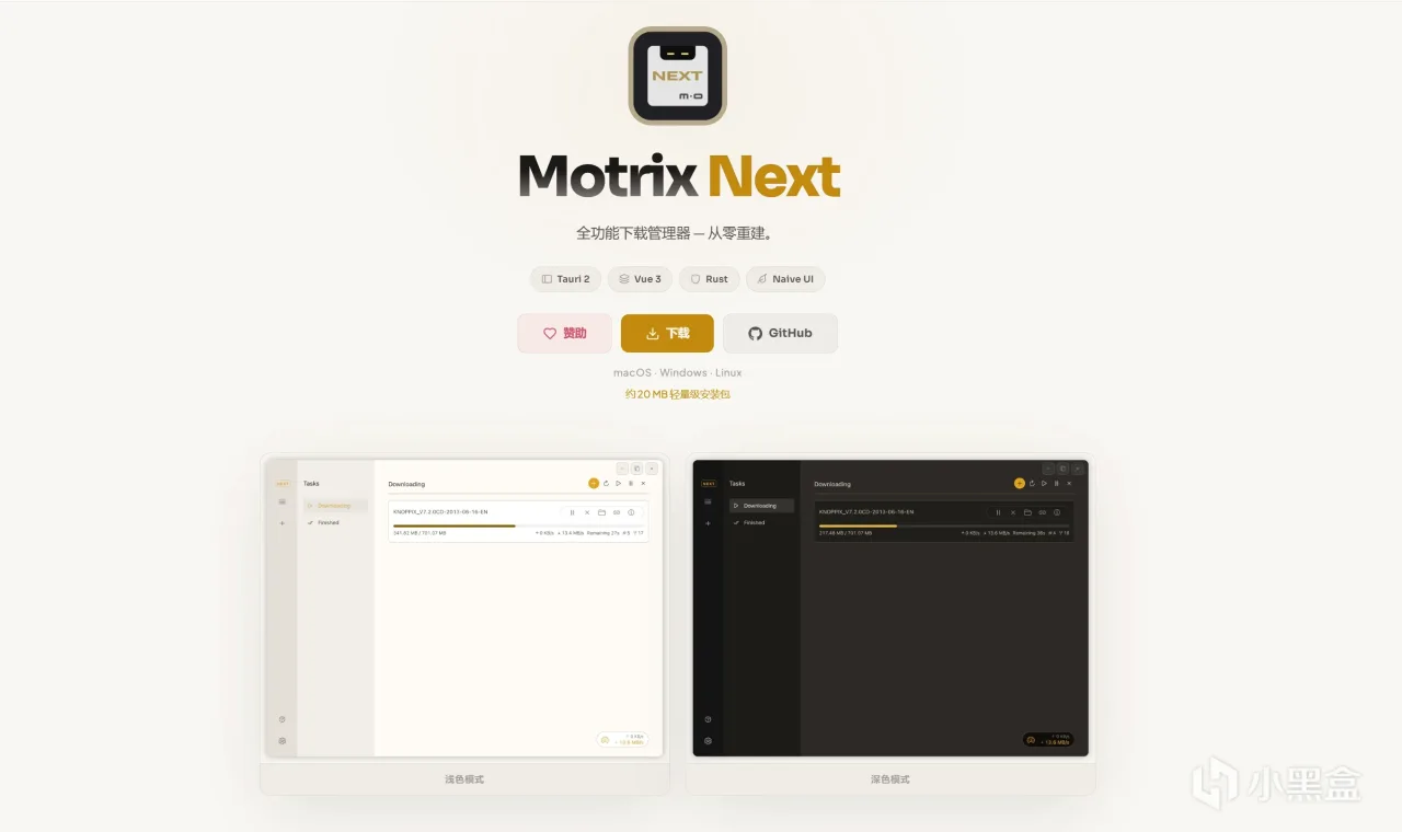 今天 軟件格律詩 給所有電腦用戶、資源黨、追劇黨、辦公黨帶來一款優秀的下載工具 - Motrix Next 經典 Motrix 完全重構,Tauri 2 + Rust 強力加持,體積暴瘦到僅 20MB,速度、流暢度、顏值全面起飛,免費開源、無廣告、不限速、不捆綁。