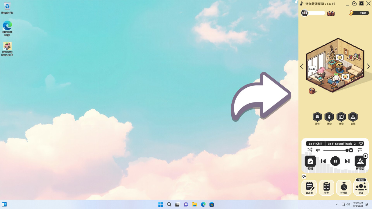 可以放置於桌面任意一角的養成遊戲。在工作休閒的同時陪小青蛙洛普卡割草,升級道具,裝扮島嶼。