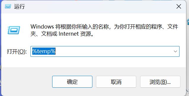按“Windows+R”彈出對話框,輸入“%temp%”