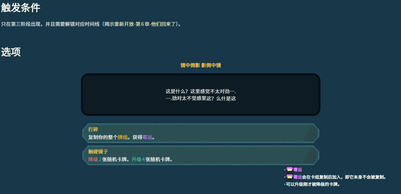 此时问号的优先级降低,主要还是三层问号太拉导致的,运气不好碰到了霉运或者删不了诅咒的后置审判事件可能让胡局变成了暴毙,还有大蘑菇打防之光这种招笑事件就不多说了。