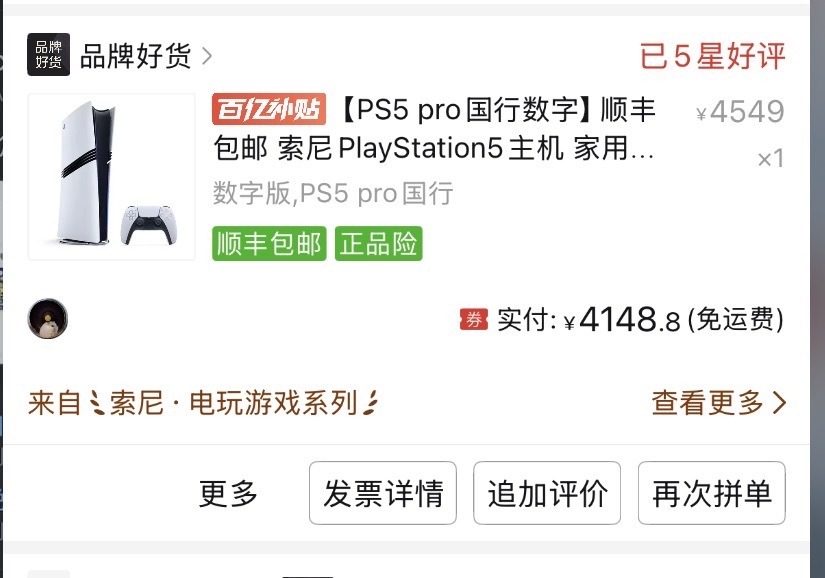 在2026年存儲價格暴漲的今天,如果我想買啥玩具了,就隨便出一套,資金也就有了。比如在2月初花4149元入手的PS5 Pro,就是我出掉一套48G D5內存後拿下的,現在PS5也漲價了,我真的暗爽不已啊~