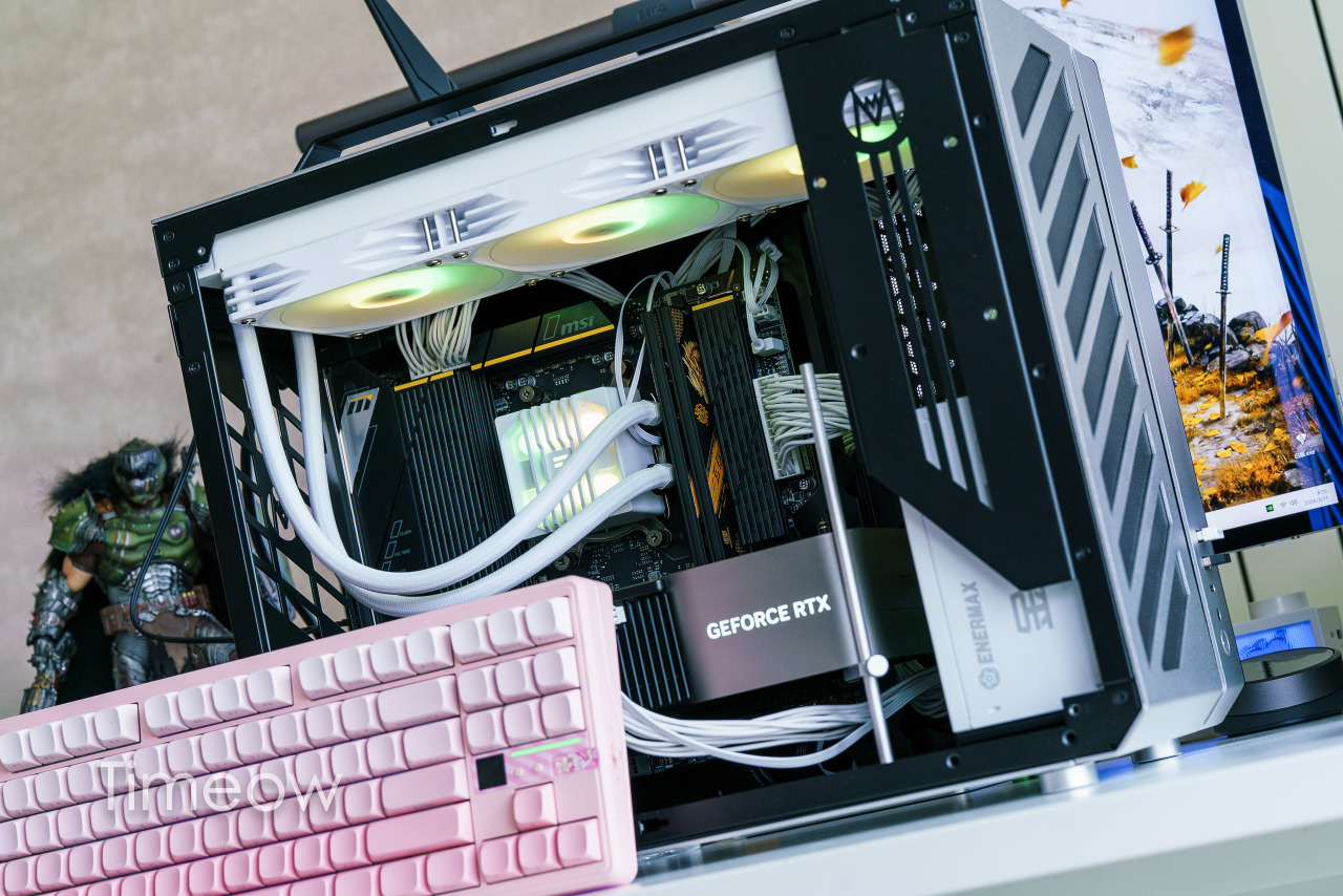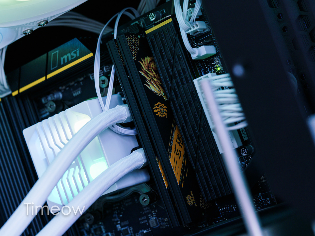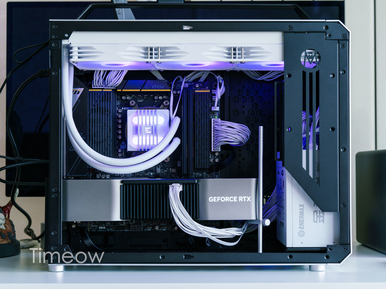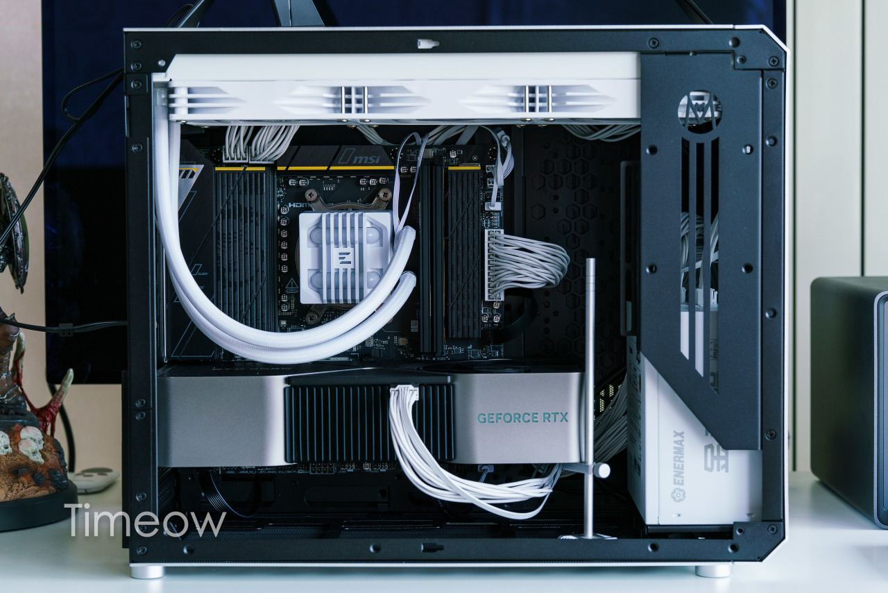 沒想到這對兒黑色小鋼炮和我的B850MPOWER主板如此搭配,頂視圖簡直像是一體設計,雖然沒有光污染,但它的質感是實打實的;