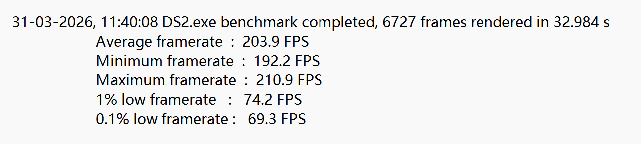 《死亡擱淺2》同場景,平均幀203.9、1% low幀74.2,前者小幅提升10%、後者小幅降低,可以視作沒有變化,這個遊戲看來對內存不敏感。