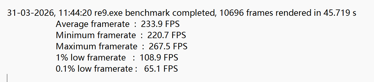 《生化危機:安魂曲》中,平均幀233.9、1% low幀108.9,前者提升10%、後者提升20%左右。