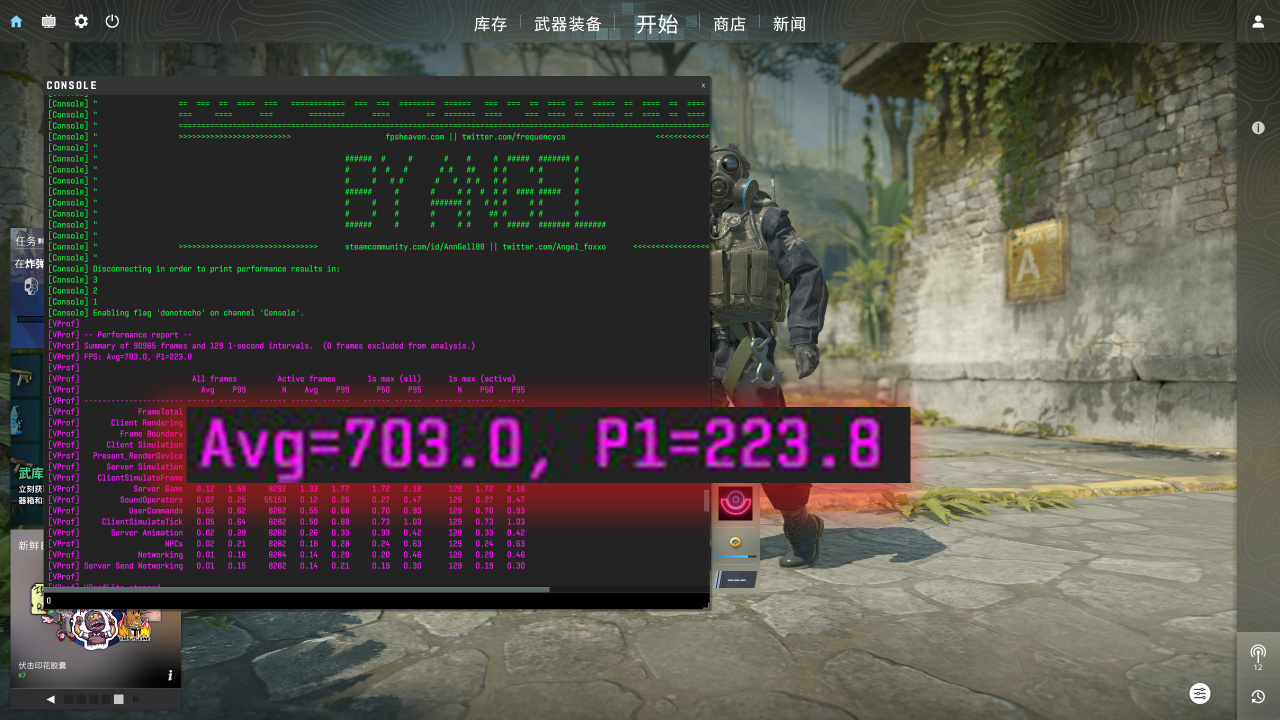 對內存頻率敏感的《反恐精英2》基準測試結果顯示,內存開到6000MT/s時,平均幀703,1% Low幀223.8,性能均有7~8%的小幅提升,尤其是1% Low幀更高了,在遊戲中的表現會更好一些。
