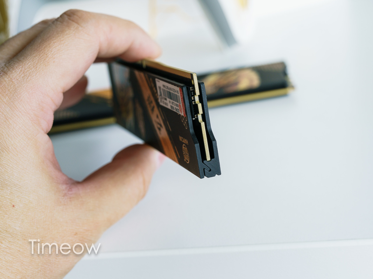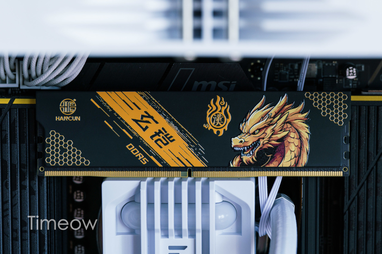 在設計上,這款內存使用了國風元素,全黑主題配合金黃色+中國龍的設計,非常適合搭配黑色主板,尤其是MPOWER。值得一提的是,上面的圖案使用了激光打印,不易掉色磨損。