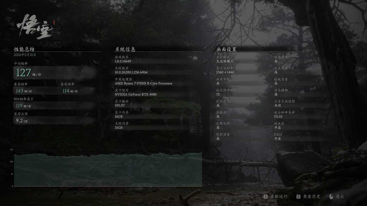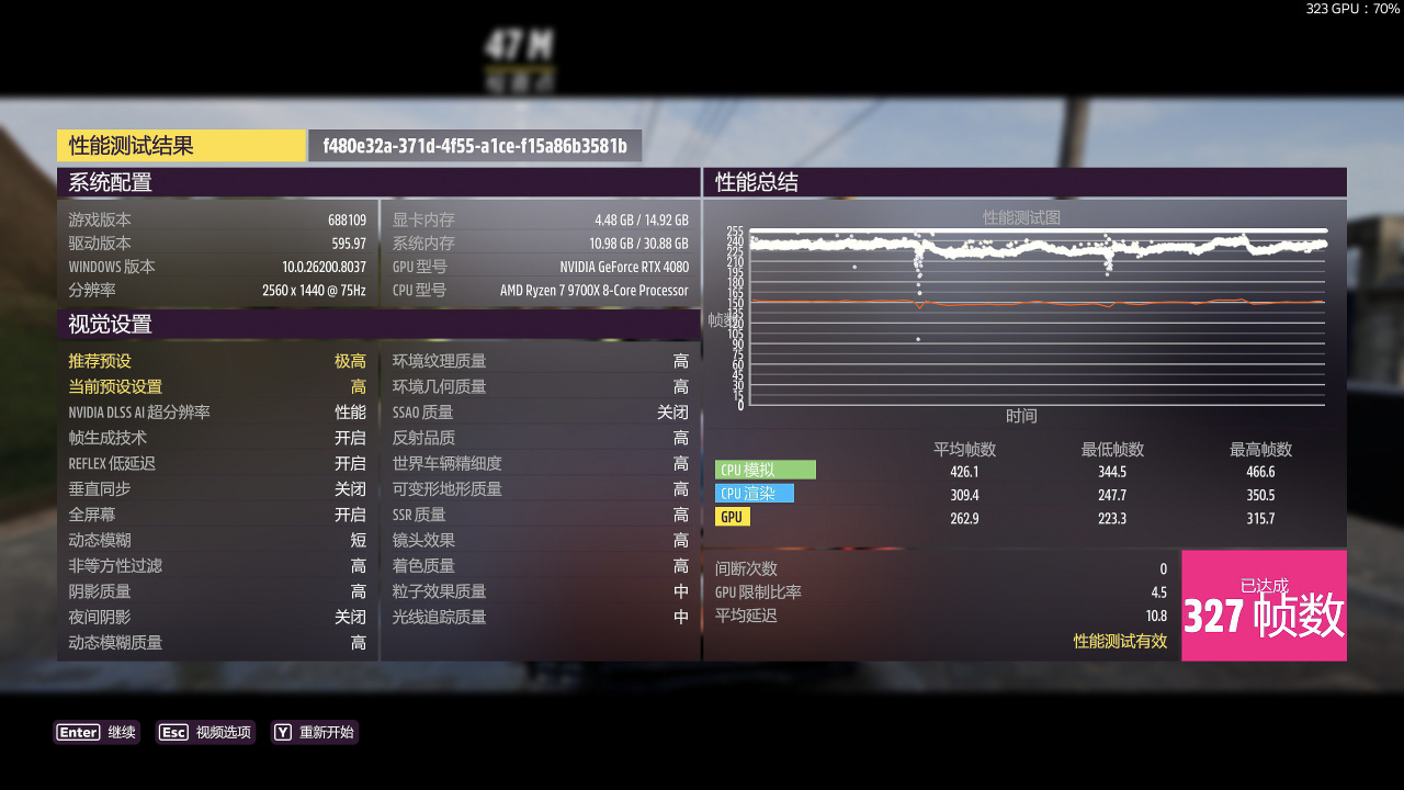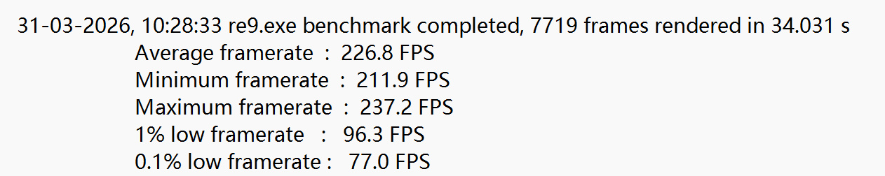 平均幀226.8,1% low幀96.3。3A大作玩出電競的絲滑感,很牛了。