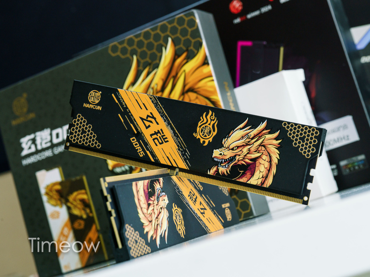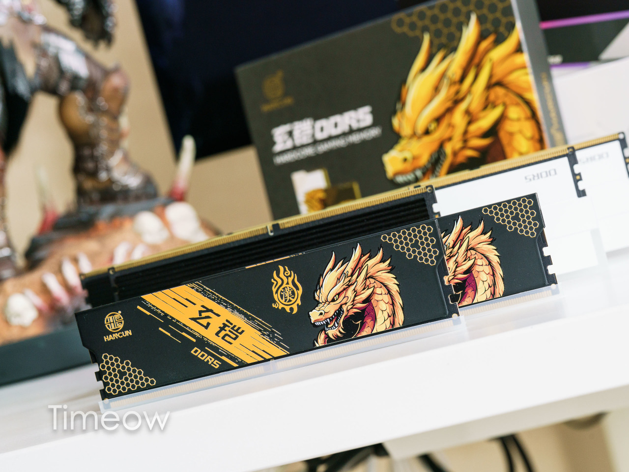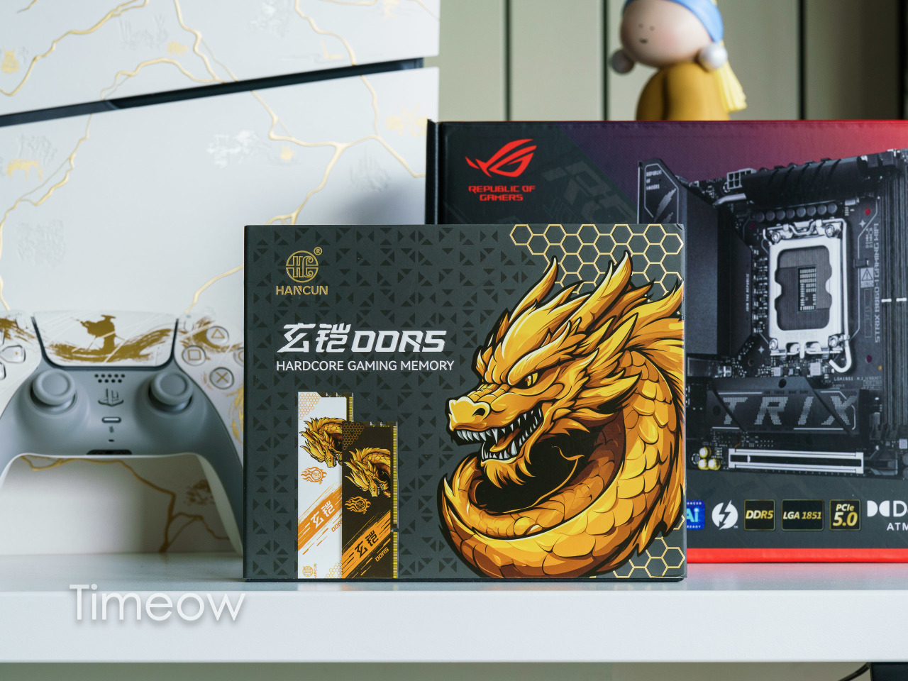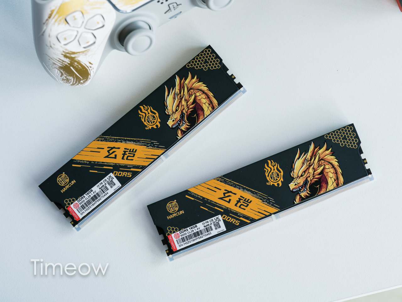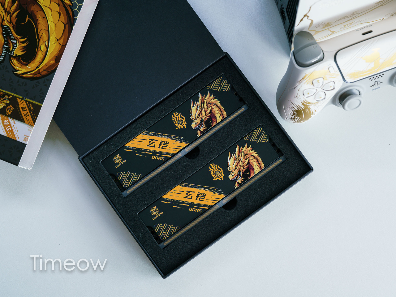 漢存的包裝走的是酷炫又務實的路線,表面印有漢存品牌logo、玄鎧DDR5型號、內存的樣式、以及中國龍的形象,整體還是非常吸引眼球的。