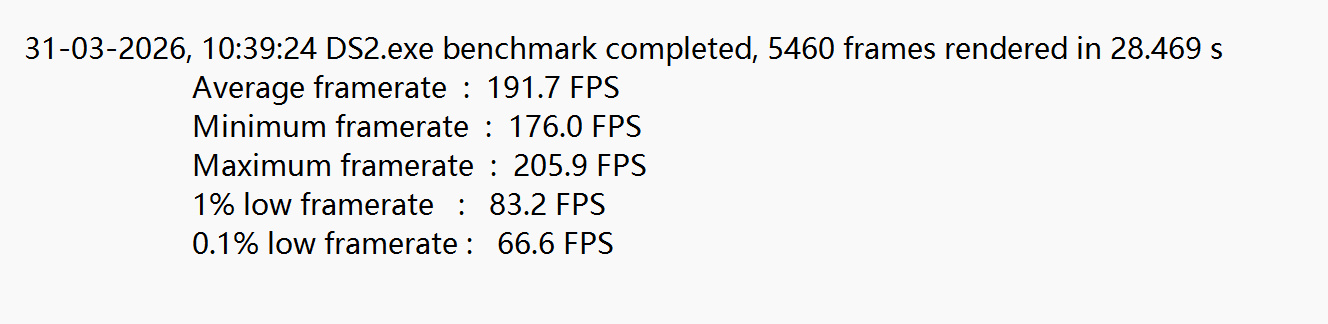平均幀191.7,1%low幀83.2。不愧是神優化、超絲滑,體驗非常完美。