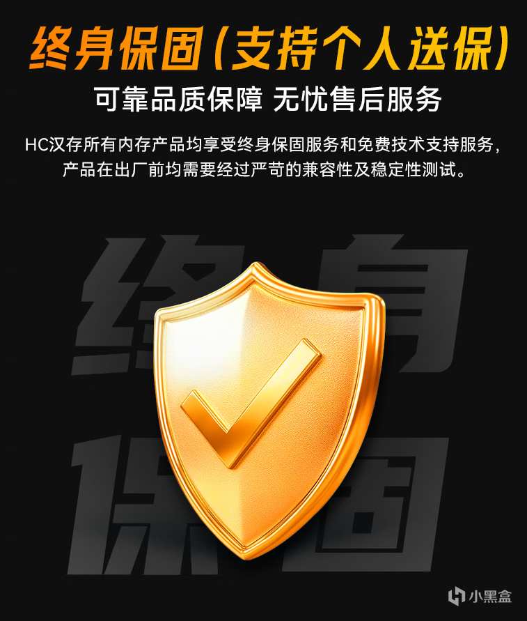 而在售後方面,它支持終身保固+個人送保,說明品牌對自己產品有信心,也對消費者有誠意,內存只要沒丟沒炸,無需購買憑證就能直接找廠家保修,非常方便,傳家寶了屬於是。