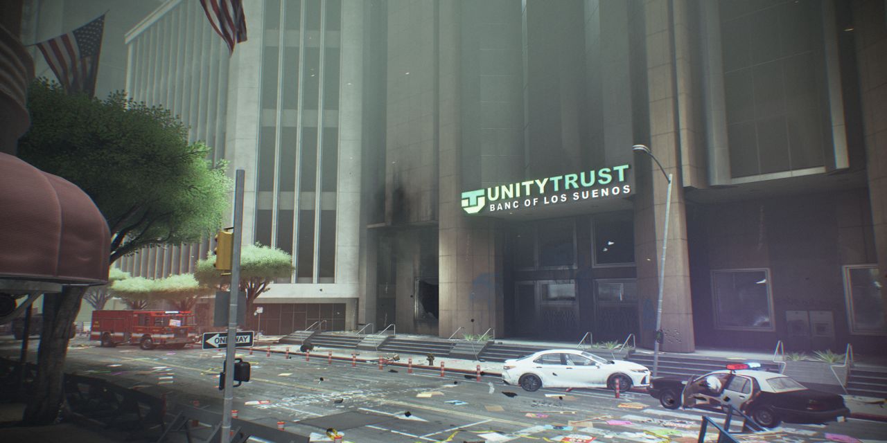 碼頭襲擊事件已將這座城市推向了暴亂的邊緣,而聯合信託銀行已然成爲了攻擊目標。在黑木碼頭襲擊事件中走私進來的炸藥現已被安放在大樓內。黑色哨兵已經現身,他們利用暴亂作爲完美掩護,搶劫並圍攻了這座城市的經濟中心。