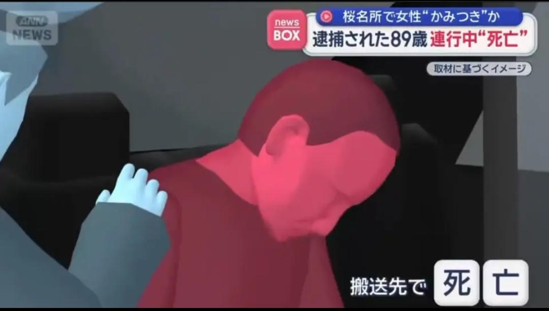 據日本朝日電視臺等媒體報道,事發當日下午,一名40餘歲女性在賞花途中與該89歲老人發生爭執,衝突中老人突然啃咬女子右臂,造成對方受傷。女子隨即報警,警方到場後以涉嫌暴行將老人當場控制。