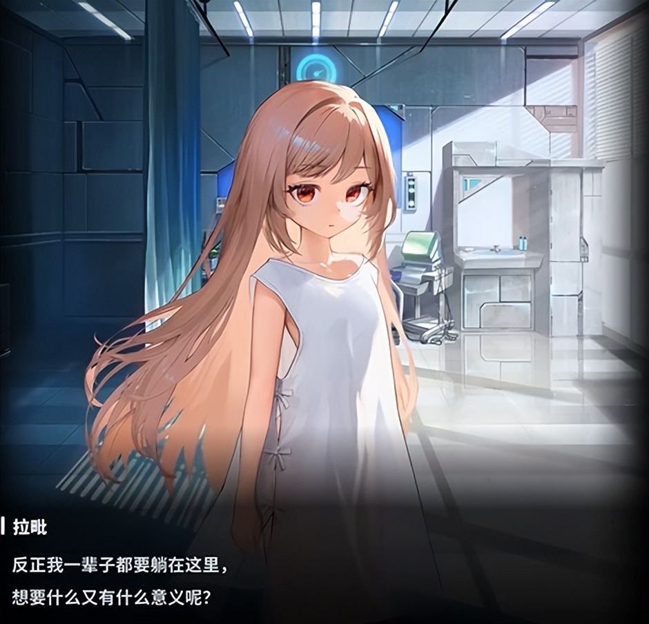 拉毗的故事始于白色。白色的病床,白色的天花板,白色的病号服,以及如白纸一般的自己,对于从小知晓自己因病一辈子会躺在病床上的小拉毗来说唯一的乐趣就是看医院里的电视,年幼的她在最脆弱的时候看到了人类第一次地面收复战时期对妮姬的宣传,这时的拉毗还纯真的以为世界本就该是人与人之间相互支撑彼此守护的模样,无论是力量还是奉献哪一条都是都是弱小的拉毗所没有的,那些妮姬身上的力量,那份为人类挺身而出的奉献精神,都是弱小的她从未拥有、却无比向往的东西。这份向往,成了她人生里第一束光。她仰着头对护士姐姐说:妮姬好帅啊,为人类而战的胜利女神,实在是太酷了。