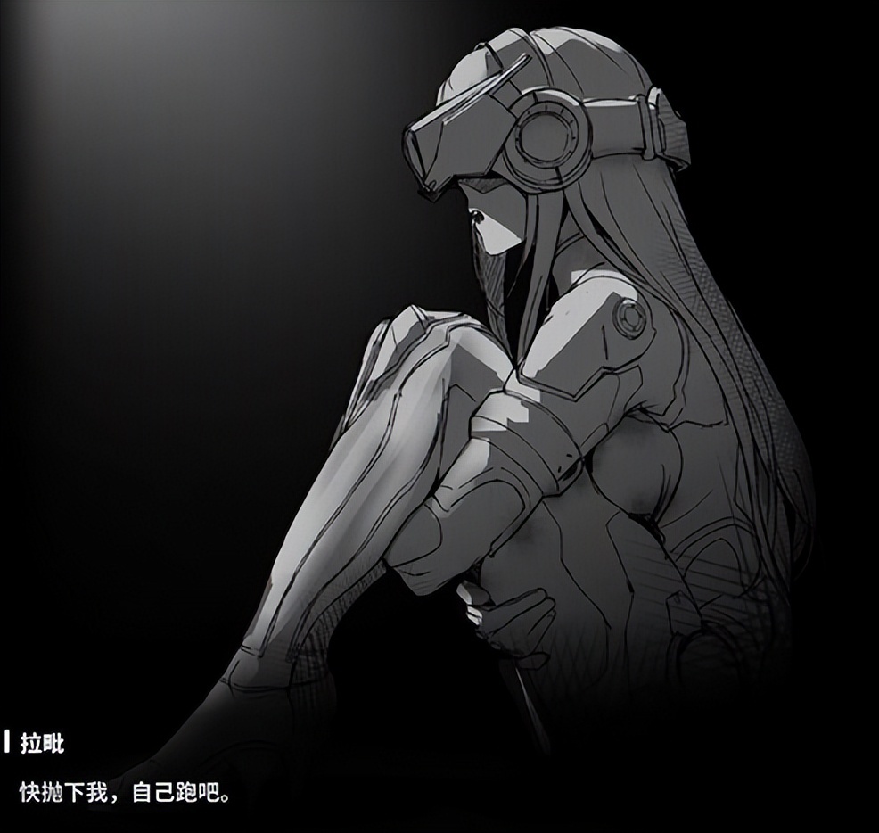 起初的拉毗只认为小红帽是心血来潮,她这一路看过太多苦难早就不再相信这种无需回报的搭救,但我们同样能看出拉毗的心中依旧藏着一丝希望,希望有人能拉她一把拯救她,在她提出去轨道电梯这种明显是刁难的条件却被小红帽一口答应时其实拉毗的心中自然有所波动,在被海量的莱彻追杀掉入深坑时这种波动达到了最高点,拉毗心中的自卑和寻死心理在黑暗中发酵,她不敢回应小红帽的呼喊,她见过太多妮姬的死亡,恐惧自己的呼喊会导致围点打援,害小红帽死去,想用自己的死换来小红帽的平安,换来自己的解脱。