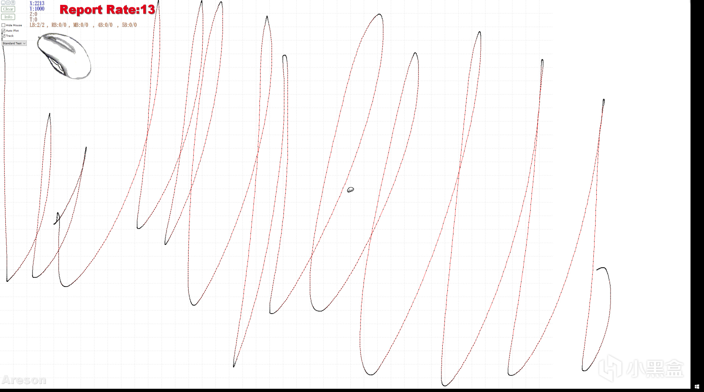 由这两张图可的出来,其实在1000hz回报率下鼠标的可以看出来帧率分布还是很均匀的没有随着跨度变大或者速度边快而产生明显的变化,相比较之下125hz回报率下帧率分散还是有一定的区别的