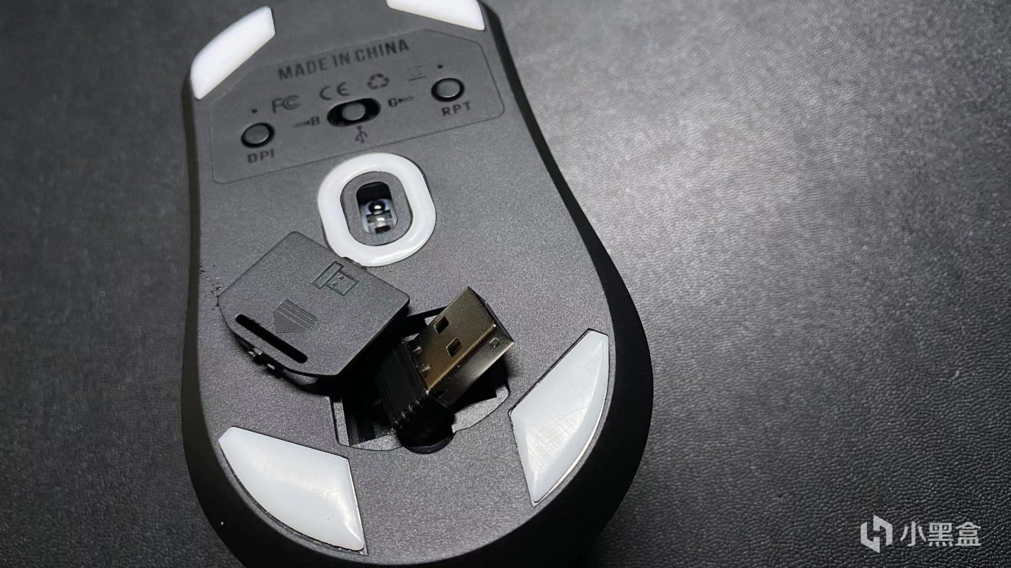 鼠标底部构成部分其实就很简单了,模式切换开关,DPI切换按键,2.4g收纳仓以及传感器组成。M3的传感器采用的是paw3395传感器,在性能的调教方面还是很不错的, 而且这么低的价格还有这个素质的传感器,我想说这是真的相当不容易啊。