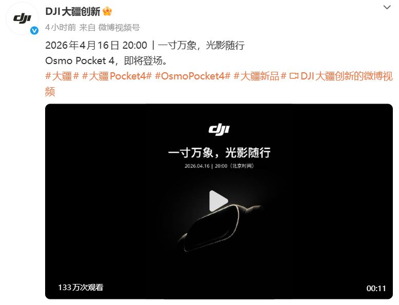 大疆 Pocket 4官宣,搭载一英寸传感器