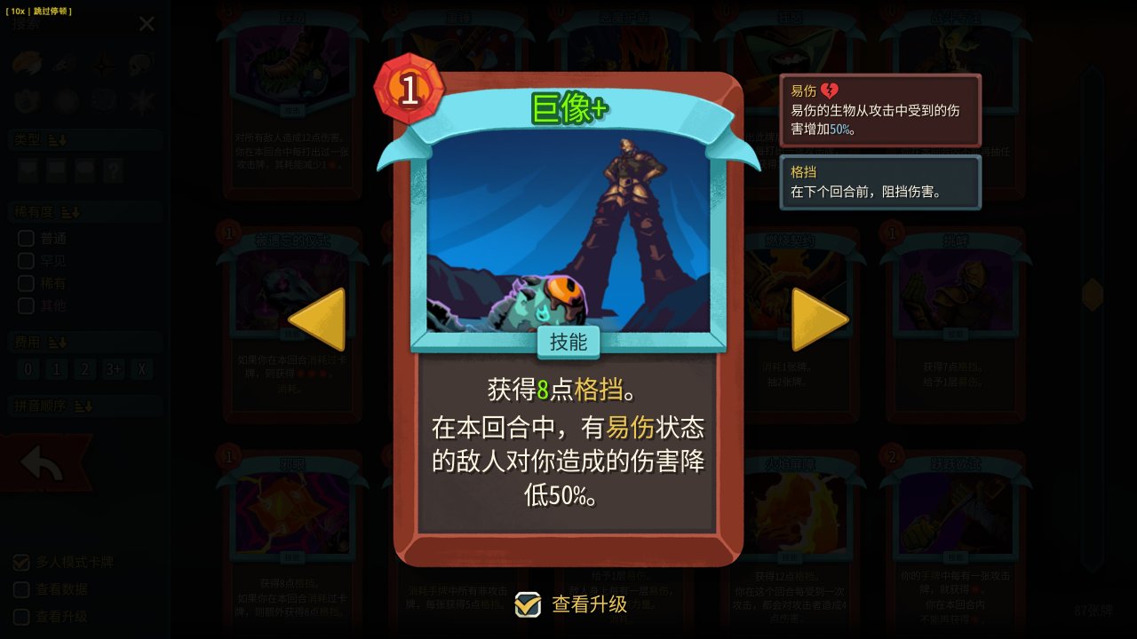 本次改動核心是大幅提升鐵甲戰士的生存能力。巨像歸入罕見卡池,能減少玩家對稀有防禦卡牌的依賴,也能彌補缺少虛弱效果的短板。