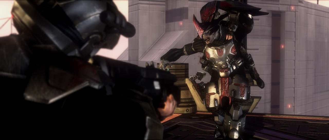 就在這時,遠處傳來謝因的呼喊,巴克剛要起身,後背突然傳來一陣劇痛 —— 謝因繞到巖縫側面,一槍擊中了他的護甲能量核心。能量護盾瞬間失效,巴克踉蹌着跪倒在地,沙因的槍抵住了他的後腦勺:“愛德華・巴克,勸你的同伴別再做無謂的抵抗,否則,你就是第一個倒下的斯巴達。”