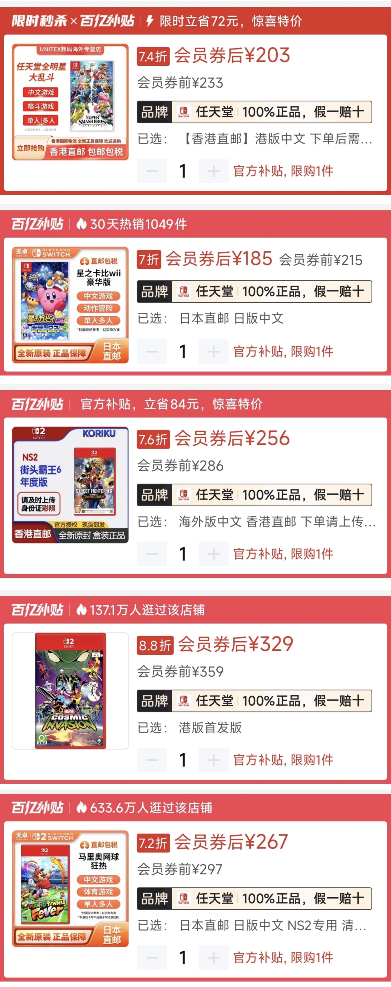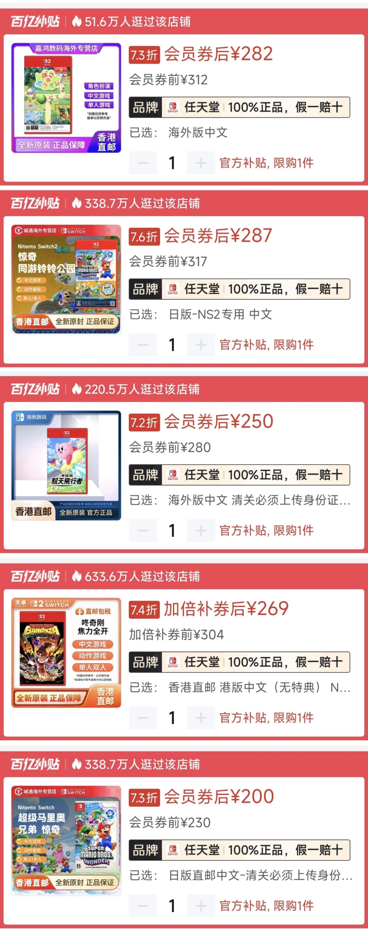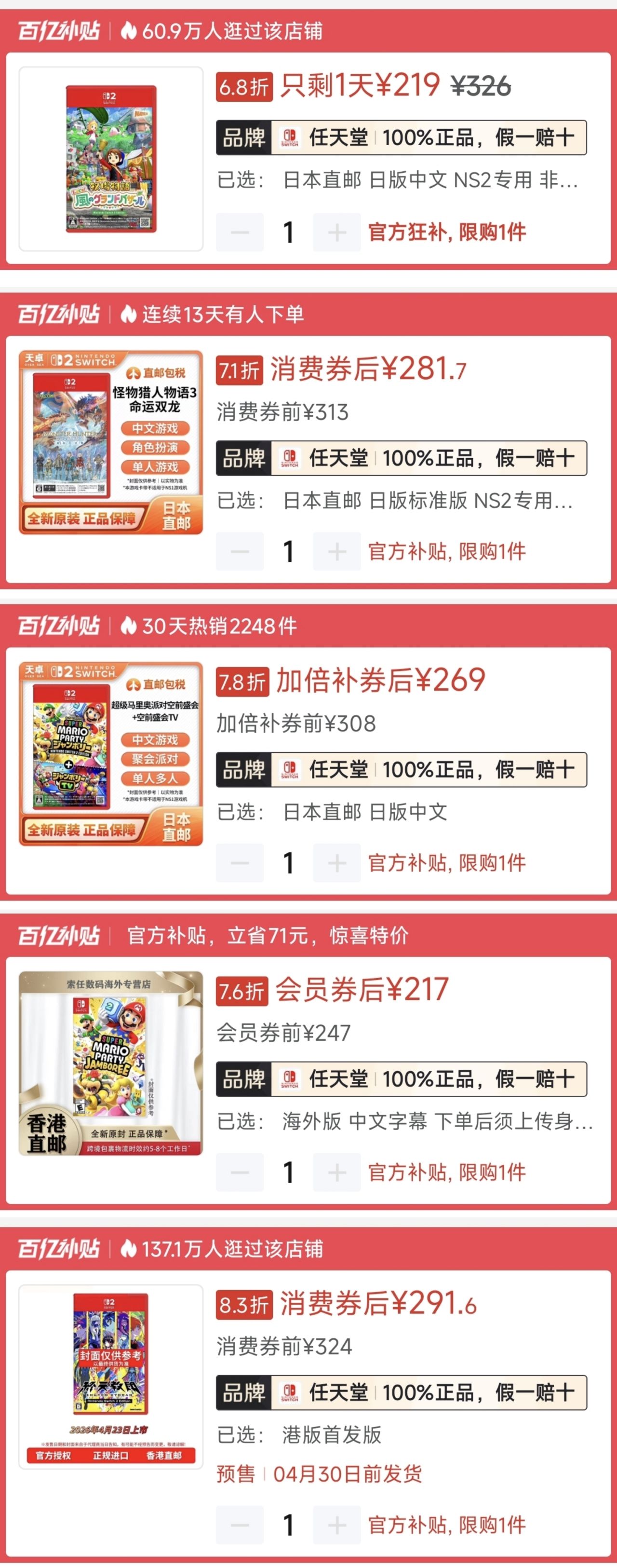 1.《馬里奧派對空前盛會》ns2版🇯🇵258(-50)|史低254