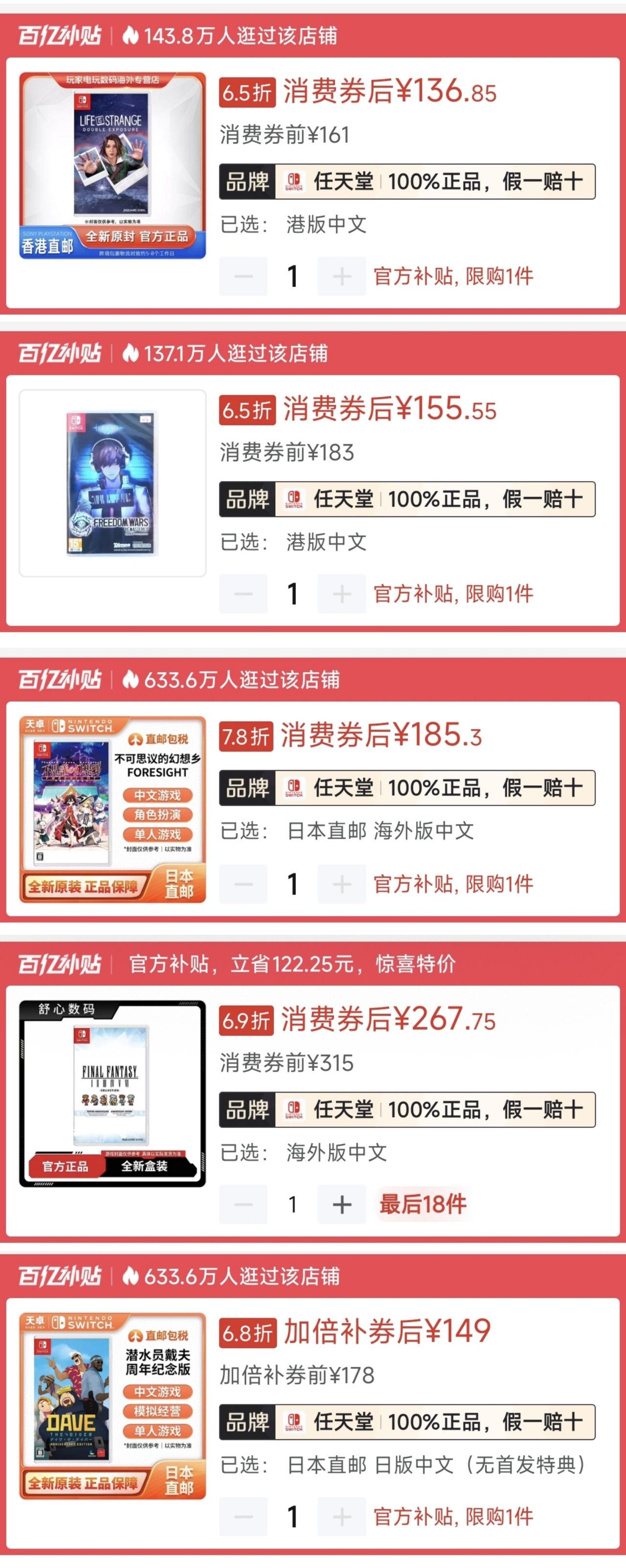 「4.10」Switch好價卡帶速通