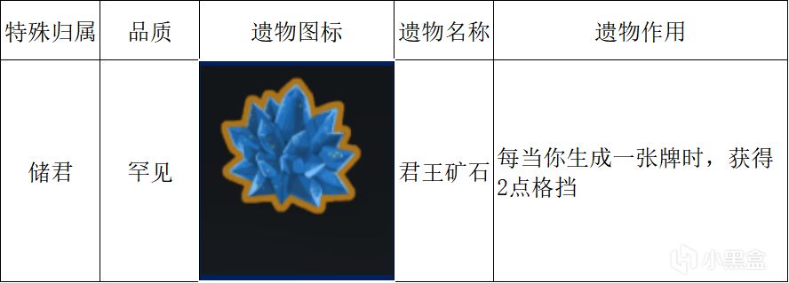 储君仅有遗物进行了调整,原先和武器库一样绑定了无色牌,现在只要生成牌就可以获得2点格挡。