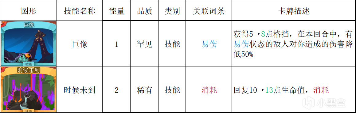 巨像这张大家都认为非常强的防御卡,现在降低了稀有度,从稀有变为罕见卡,这张卡与众多易伤卡配合,可以大大降低防御端压力。比如挑衅+巨像。这也一定程度上解决了战士防御端罕见卡池防御力不足的问题。