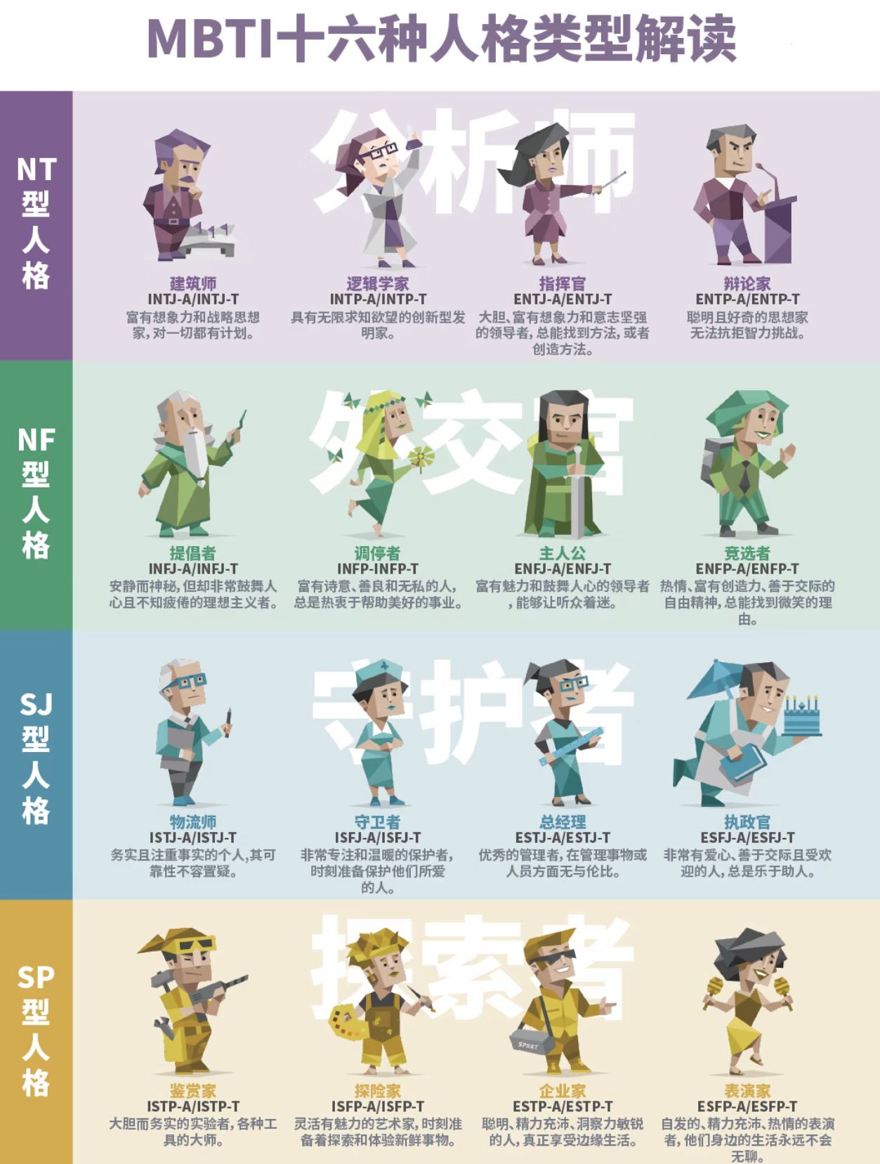 難以想象吧,一個不正經的玩笑,勝過十萬個心理學量表傳播。這就要說到MBTI的老套路了。它之所以能火這麼多年,是因爲最快給人歸類,讓大家都能最快明確對方是個什麼東西。
