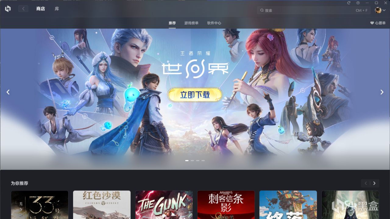 下载安装后,打开小黑盒 PC 端并登录,点击第一个滚动页进入: