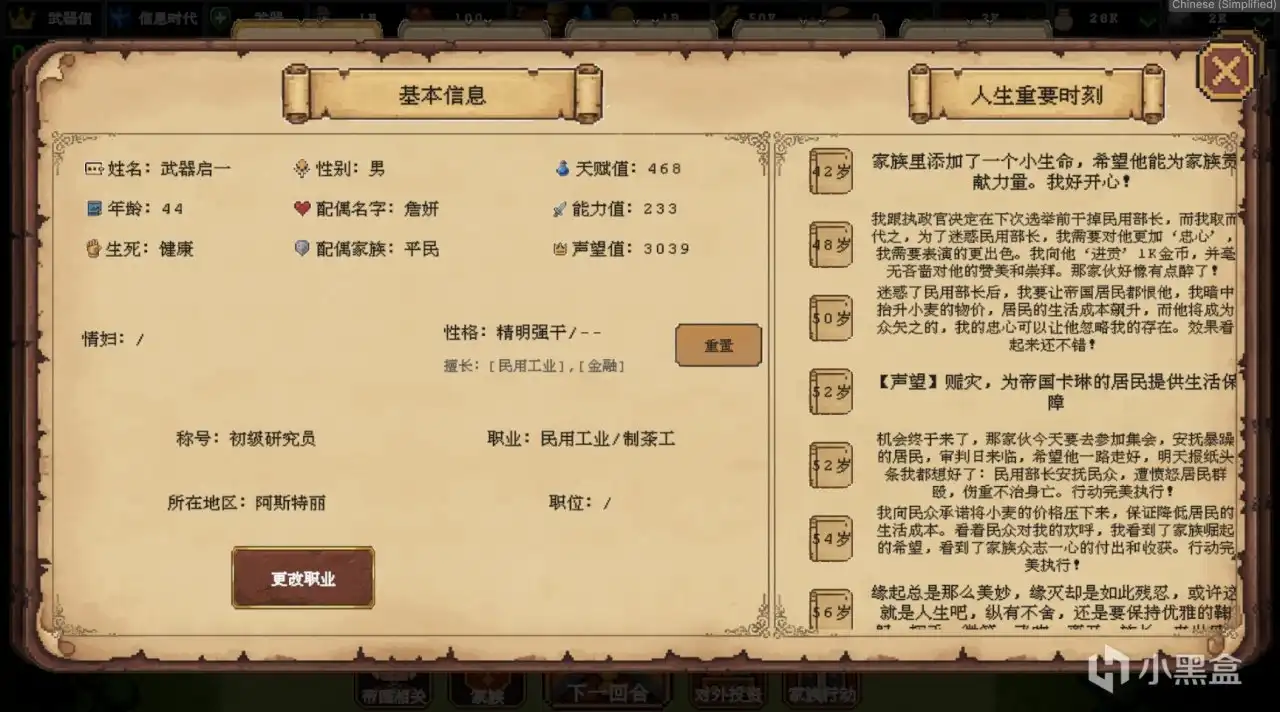 民心:当家族掌控执政官后,可以对帝国的产业重新布局,也拥有帝国特权,也可以对外发动军事战争,但让居民吃饱穿暖、有能源供应、安居乐业才是长期执政的条件,您需要跟其他帝国达成物资进出口贸易,需要改善家族间的关系,实在不行就需要发动对其他帝国的战争,更换一个自己的代理人;