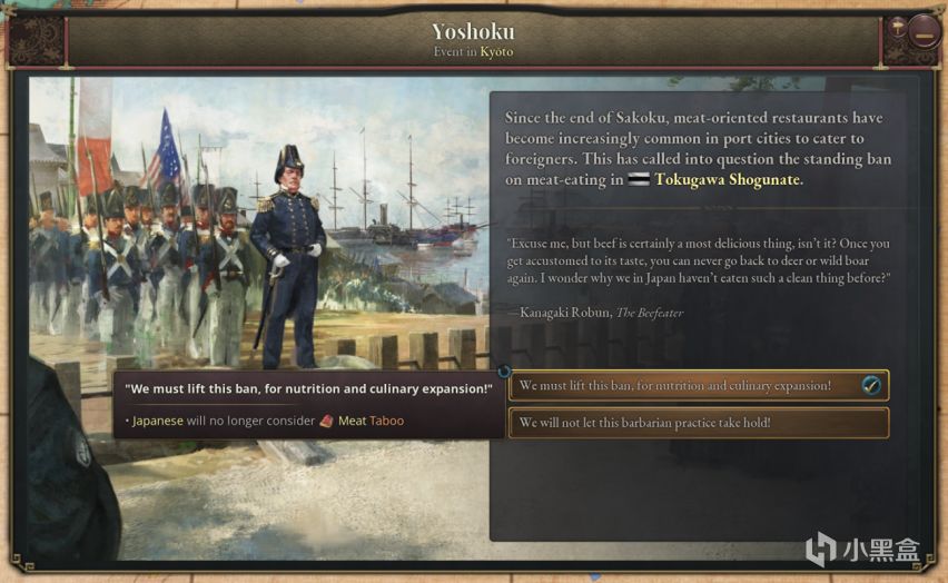 除上述敘事內容外,我們還爲日本添加了大量獨立事件。歷史自然災害事件、西化對日本社會的影響、江戶時代娛樂政策的施行——以及更多其他事件。