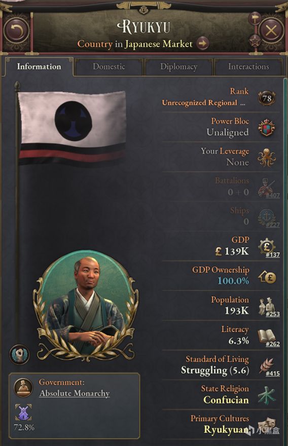 另一方面,琉球得到了對糖料生產的一定加成,這反映了糖料生產對琉球經濟的貢獻。一旦擺脫農奴制與自給農經濟,你有機會成爲東北亞的主要糖料出口商——如果再來點人的話?