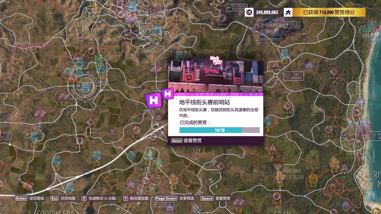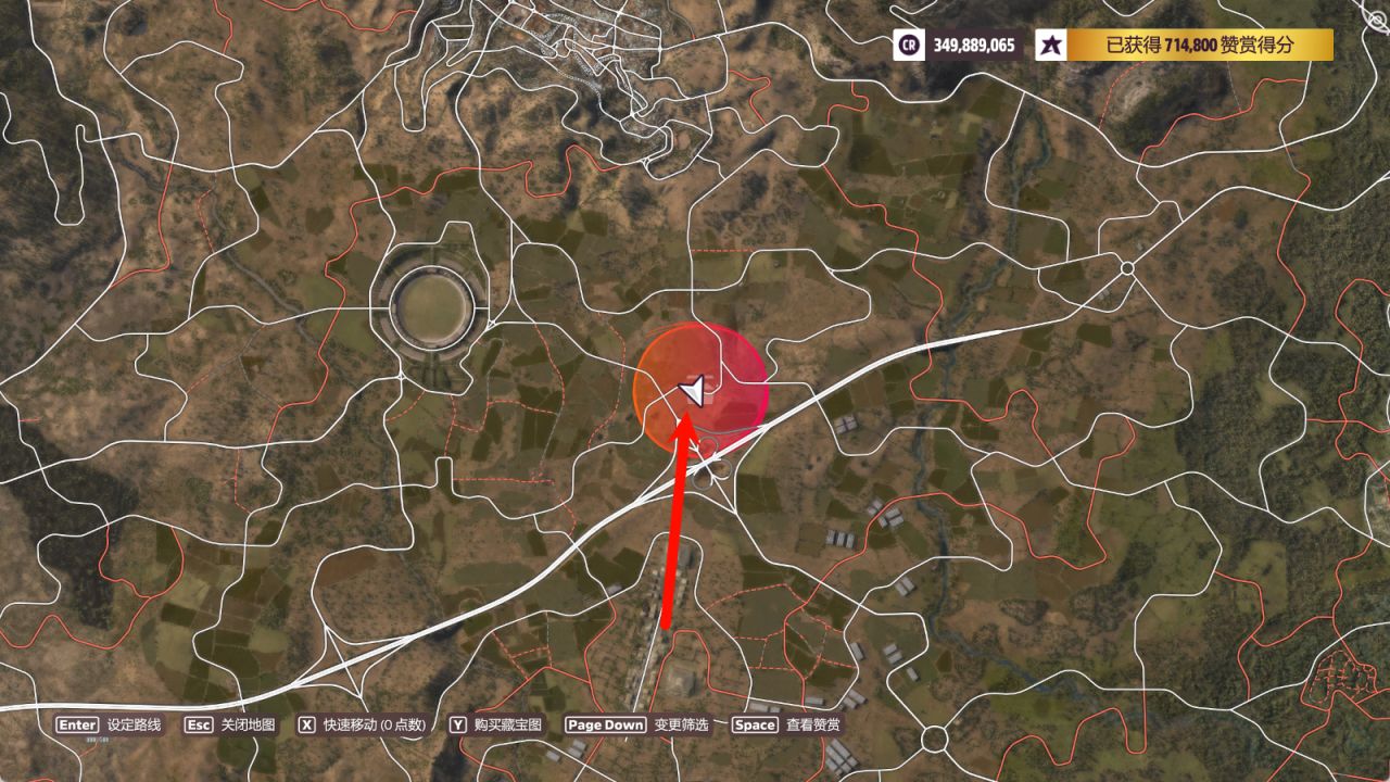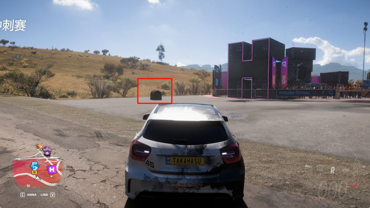 驾驶任意超高性能掀背车赢得一场街头赛,速通蓝图:719 341 858,即可触发宝箱大致范围,位置如图,完成奖励为300马拉松点数。