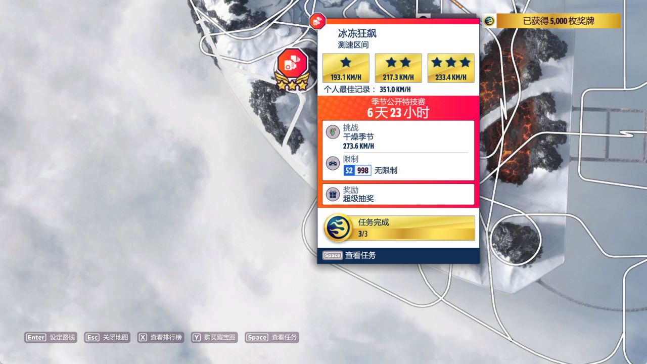 测速区间:树林,完成奖励为超级抽奖(完成条件:273.6km/h)