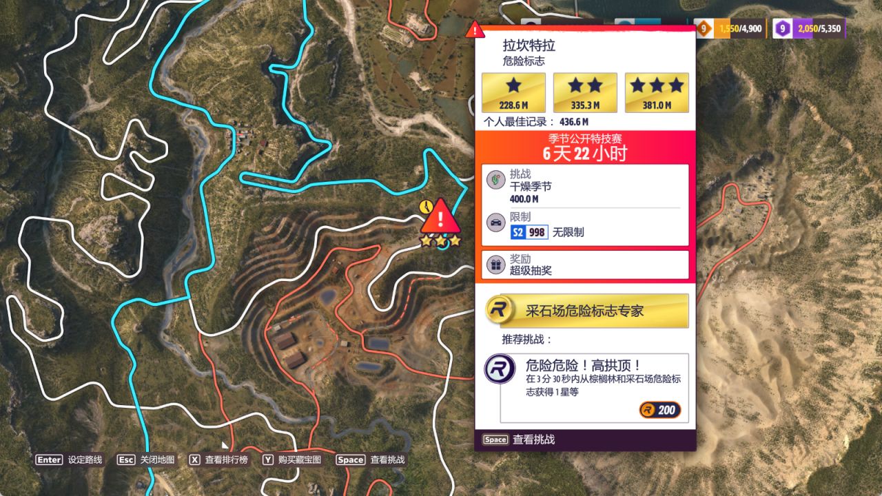 危险标志:山丘,完成奖励为超级抽奖(完成条件:518m)