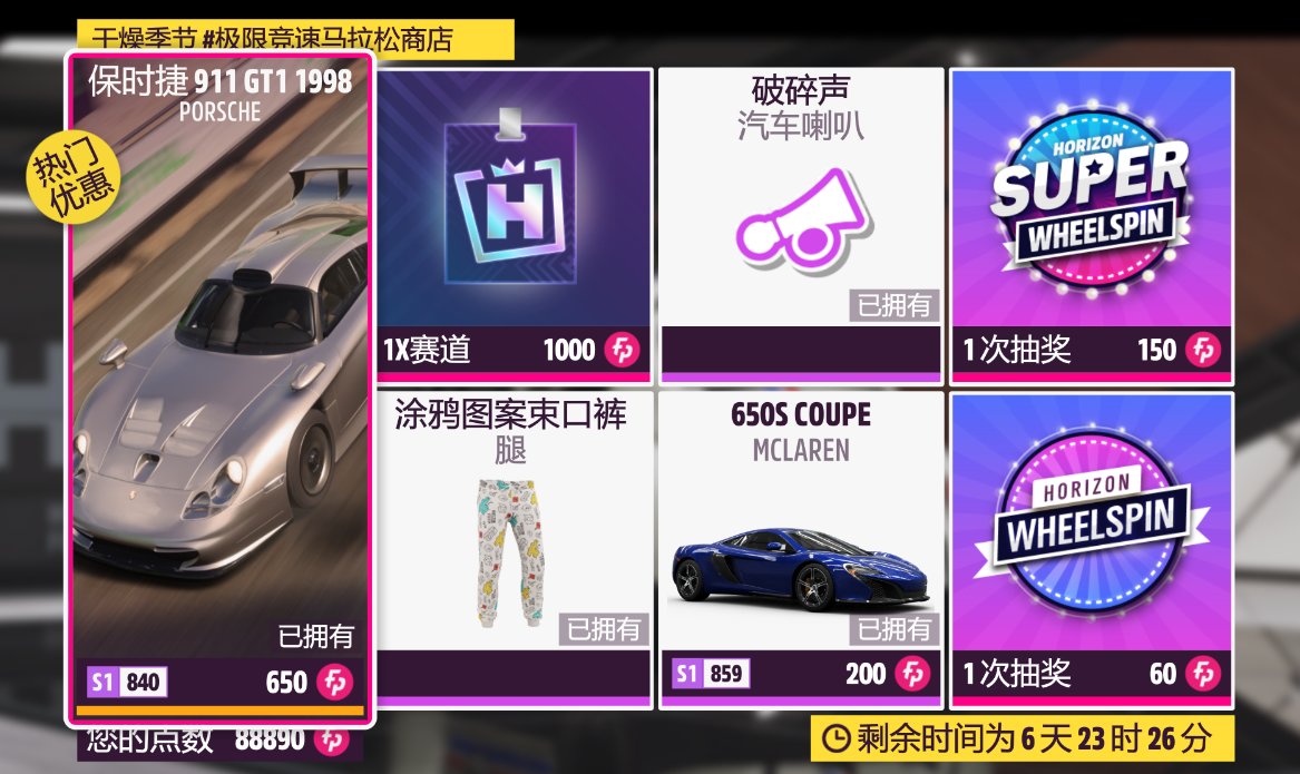 4、季节锦标赛一:马拉松赛(限制S1(900)-现代超级跑车)