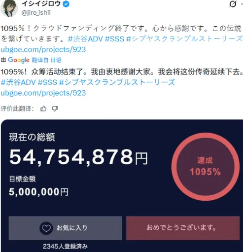 最後結果是好的,籌集到了5475萬日元,是原本衆籌目標金額的10倍。原本不出意外的話,這該是一個玩家爆金幣,製作組狂喜的雙贏結局,結果到了去年9月初該結賬打款的時候,這衆籌款遲遲沒到賬。