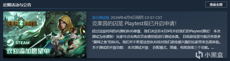 在昨日,我們的遊戲《克萊茵的囚籠》正式開放了Playtest測試。