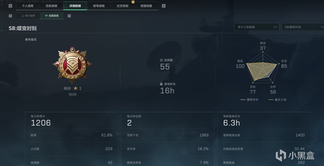 2.随着段位提升,“表现分数”会越来越低(列兵甚至是统帅的5倍)。