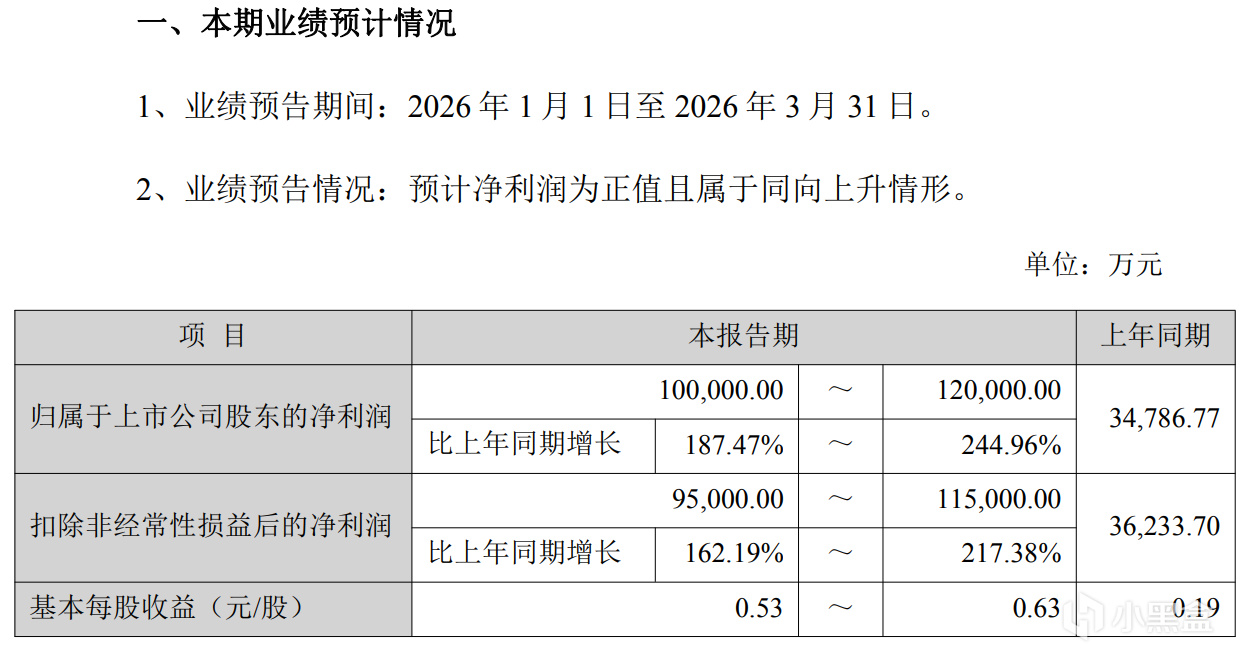 而在2026年第一季度,公司预计实现净利润10亿至12亿元,同比增长187.47%至224.96%;扣非净利润预计为9.5亿至11.5亿元,同比增长162.19%至217.38%。