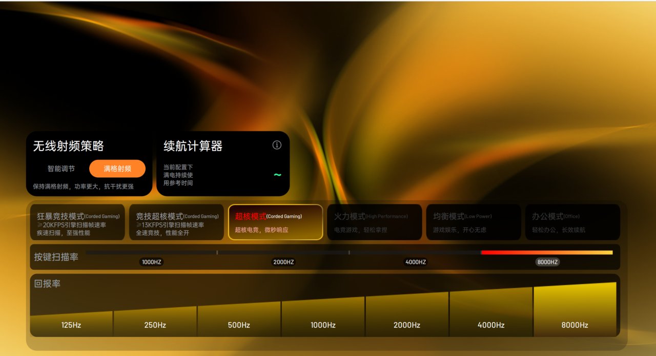 拥有市面上续航最强的超20000FPS全段扫描帧速率,加上高回报率,电竞强跟手感