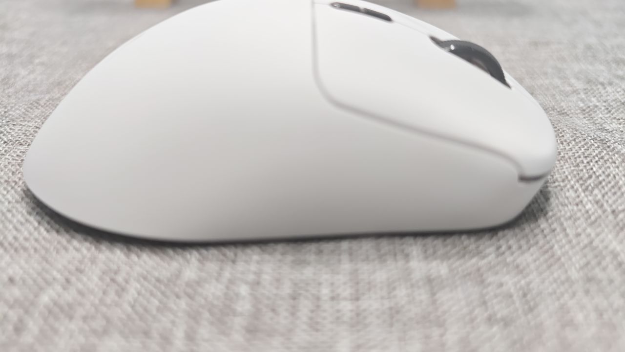 根据上面的这张图片,你可以看出,这只鼠标的右侧裙部分有一定的突出,前伸还是蛮舒服的,但如果,你的手指有一定的内凹习惯,那这个鼠标你可能用的就没有那么的合适了