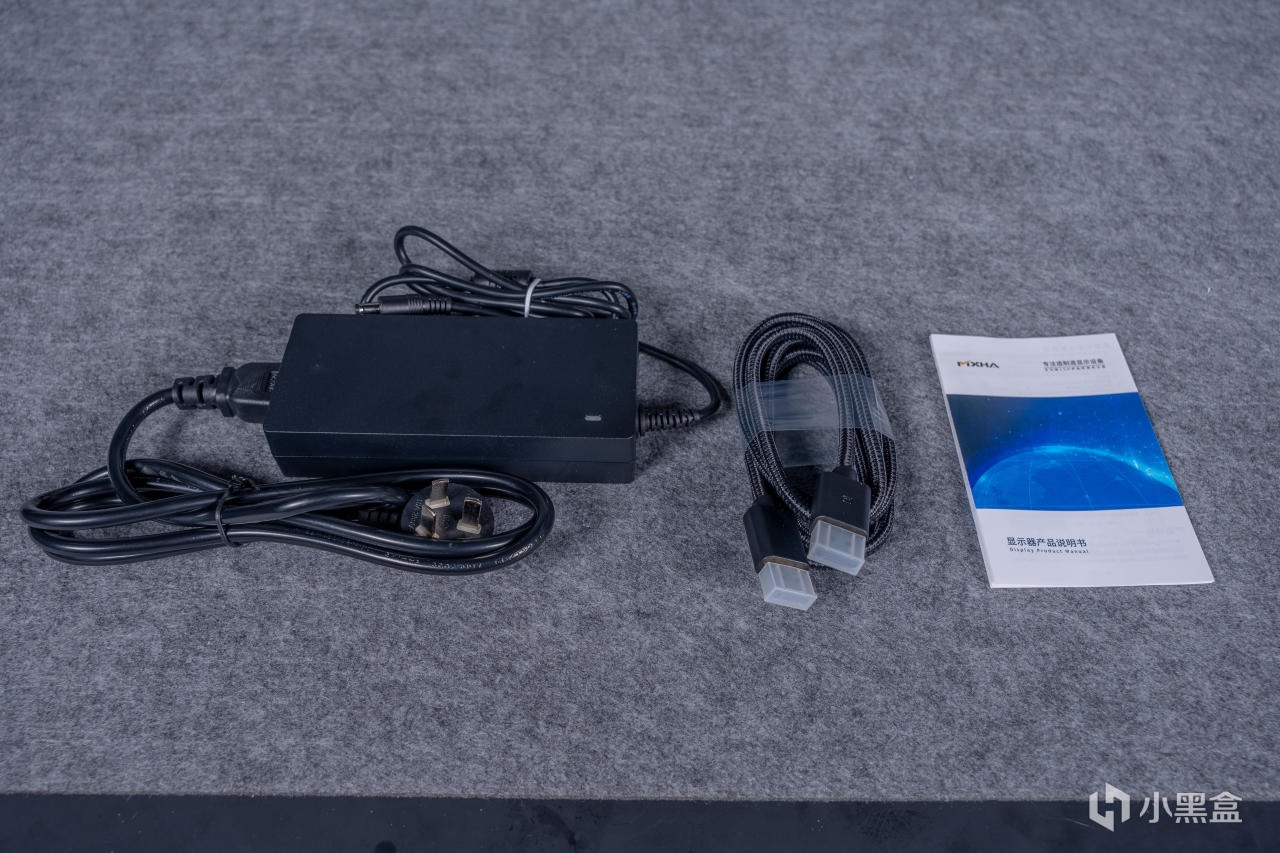 配件方面给到了一个24V-6A适配器,一条HDMI线,支架臂和底座需要收到货后自己简单组装。