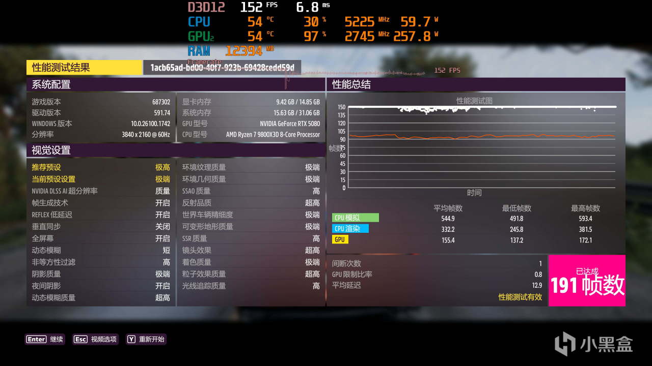 《地平线5》4K极端画质+DLSS质量的情况下,能跑到191帧。