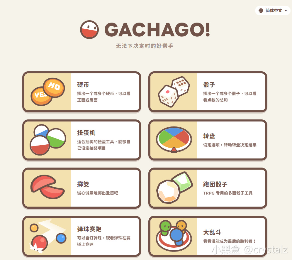 涵盖掷硬币、骰子、扭蛋机、转盘、弹珠赛跑等十种工具,适配日常纠结吃什么、活动抽奖、朋友聚会玩游戏等场景使用。